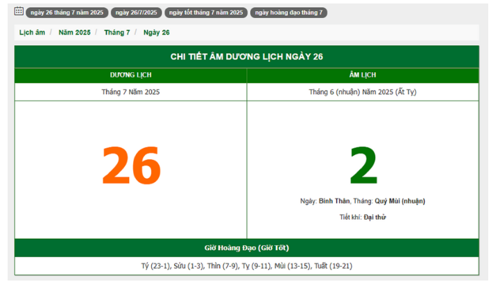 Hôm nay (26/7/2025), có phải ngày đẹp không?