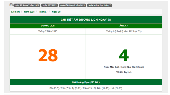 Hôm nay (28/7/2025), có phải ngày đẹp không?