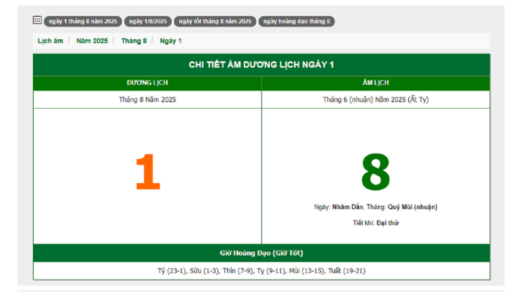 Hôm nay (1/8/2025), có phải ngày đẹp không?