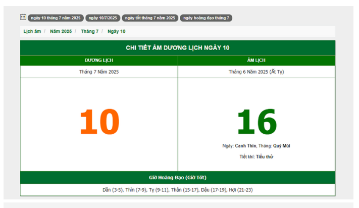 Hôm nay (10/7/2025), có phải ngày đẹp không?