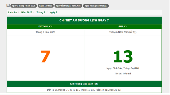 Hôm nay (7/7/2025), có phải ngày đẹp không?
