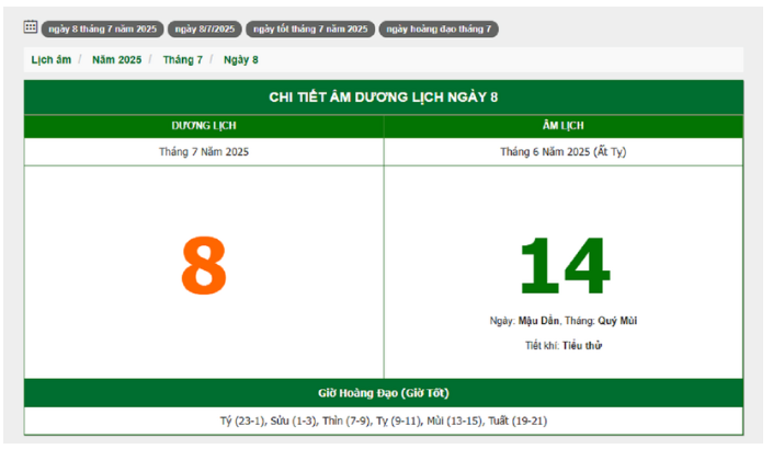 Hôm nay (8/7/2025), có phải ngày đẹp không?