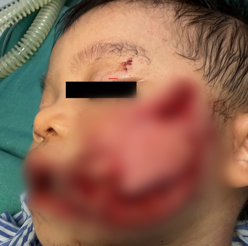 Bị chó nhà nuôi tấn công, bé 2 tuổi nhập viện với nhiều vết thương trên mặt