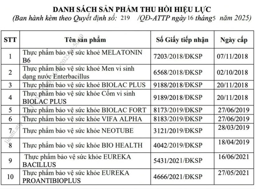 Danh sách 12 thực phẩm bảo vệ sức khoẻ bị Bộ Y tế thu hồi hiệu lực công bố